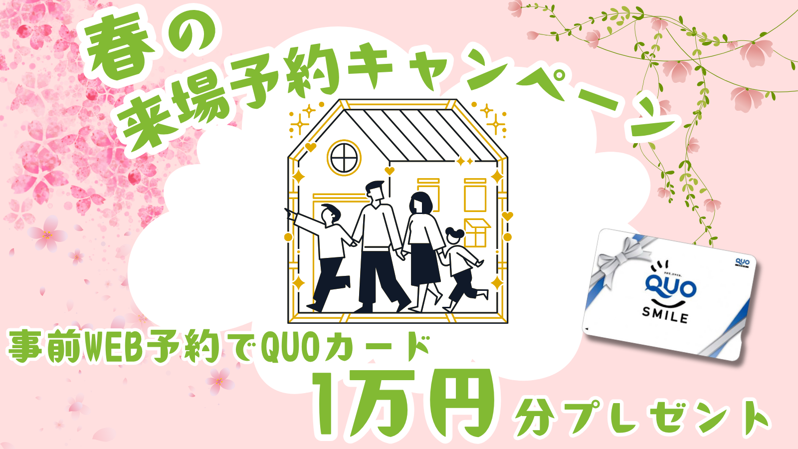 - 【4月限定】QUOカード1万円分プレゼント!春の来場予約キャンペーン!